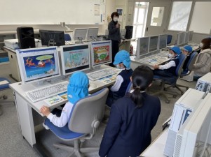 福祉生活科学系列の授業「子どもの発達と保育」で、甲府西幼稚園とのクリスマス交流会を本校にて行いました。開会式では生徒と園児さんとが手作りのクリスマスカードの交換をし、6階「集いの広場」からの眺めに園児さんたちの歓声が上がりました。その後格技場で体を動かしたり、PC室を見学したり、図書館で折り紙遊びや読み聞かせを行いました。校内には園児さんのかわいらしい声が響き、心癒される時間となりました。