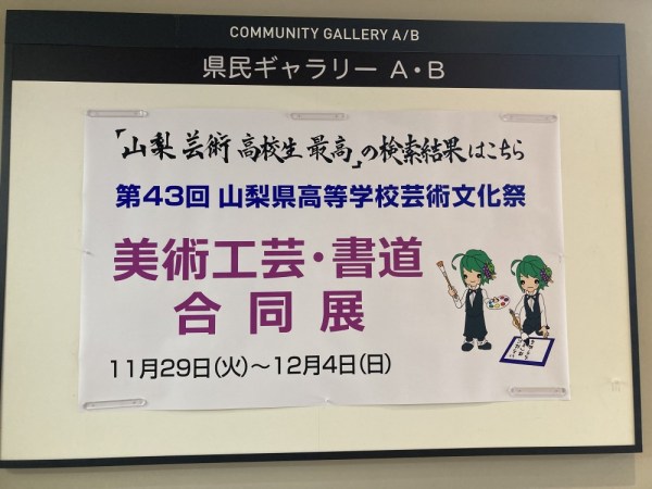 11月29日から12月4日まで山梨県立美術館B・Cギャラリーにて芸術文化祭書道部門の展示を行っています。今年度は2年次3名と1年次1名が出品しました。
