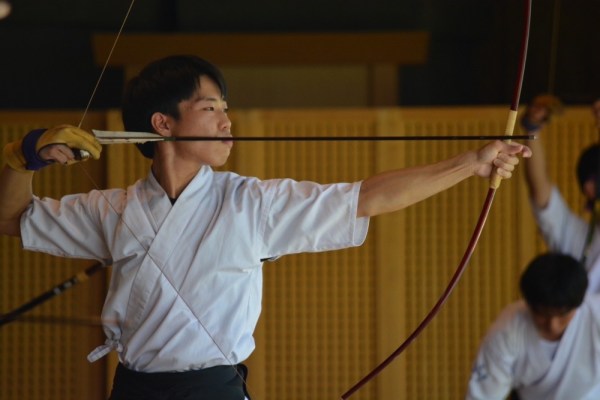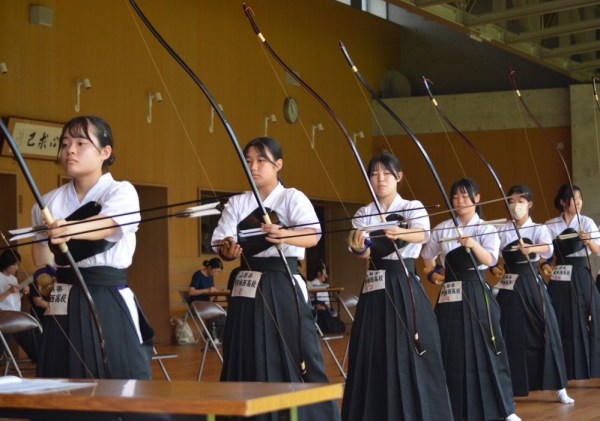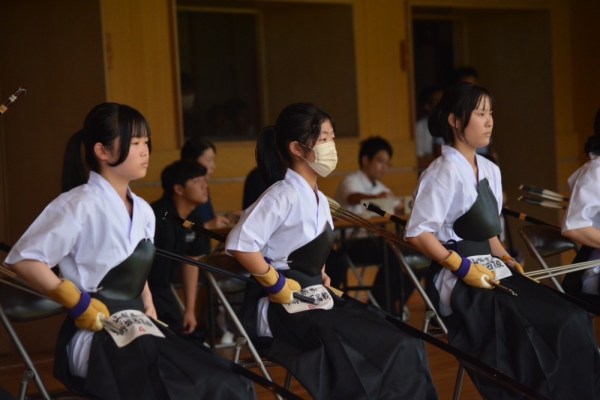 1年生にとって初めての大会でしたが、緊張しながらも落ち着いて弓を引くことができました。いつもの実力が出し切れなかった生徒もいましたが、精一杯頑張ることができました。